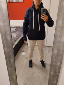 Johnas S. Octuber 2025Verified BuyerStylisch, bequem und richtig praktisch! Die Reißverschlusstaschen sind genial, alles passt sicher rein. Der Hoodie sitzt athletisch, ohne einzuengen. Kann ihn jedem empfehlen, der Komfort und Style verbinden will.