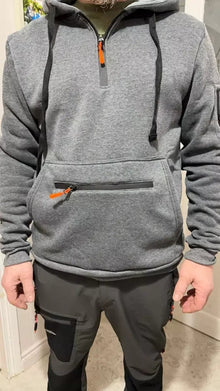 Entdecke den perfekten Mix aus Komfort, Funktion und urbanem Style. Das weiche, atmungsaktive Material hält dich warm, während der praktische Quarter-Zip und die verstellbare Kapuze flexible Anpassung ermöglichen.